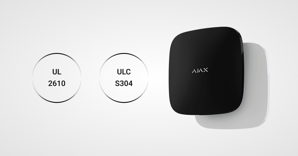 Currently, compliance with both UL 2610 and ULC S304 standards has been achieved for Ajax control panels available in the North America region — Hub 2 (4G) Jeweller and Hub 2 Plus Jeweller. Compliance details are available in the official UL Prospector.