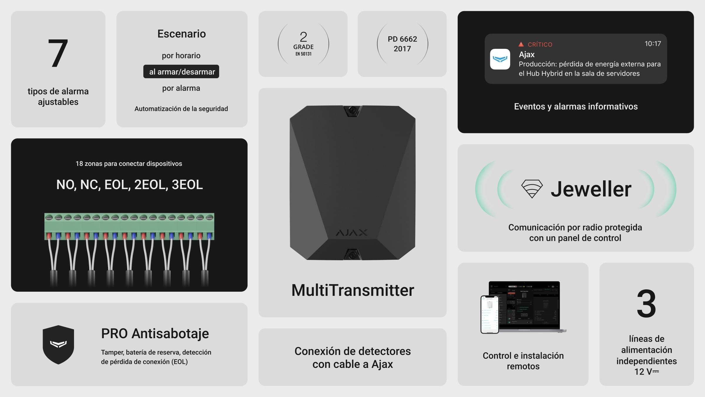 En la actualidad, la mayoría de las soluciones híbridas del mercado siguen utilizando la tecnología de los años 80. Sus detectores cableados son relés. Y un panel de control supervisa la tensión en el cable, no el funcionamiento del detector. Sin embargo, el detector puede fallar, un instalador puede provocar un cortocircuito y los delincuentes pueden sabotear una línea. Además, no hay nada como la configuración o el control remoto de un sistema de este tipo.