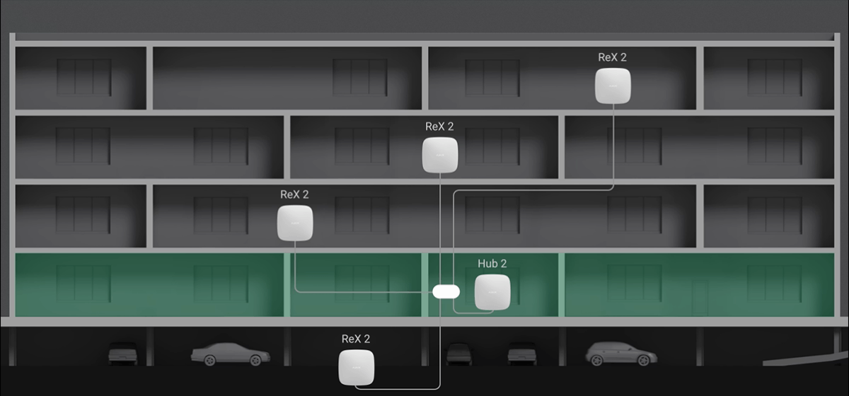 Desde el punto de vista tecnológico, el nuevo ReX 2 ha ido mucho más allá de los clásicos repetidores de señales de radio. Crea grupos autónomos de dispositivos dentro del sistema y optimiza su comunicación. No importa cuántos dispositivos se conecten a través de ReX 2, ya sean cinco, diez o cien, sus módulos de radio se ajustan automáticamente para lograr un consumo de energía óptimo y una transmisión instantánea de eventos en caso de alarma.
