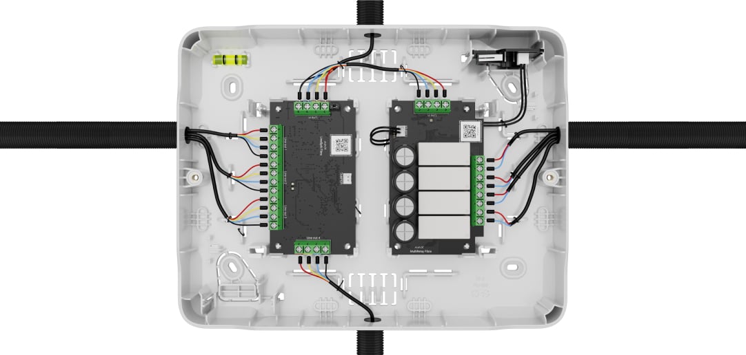 Incluida en el kit completo de Case. La placa del interruptor antisabotaje se conecta al conector correspondiente de uno de los dispositivos y protege los dispositivos instalados contra el sabotaje.