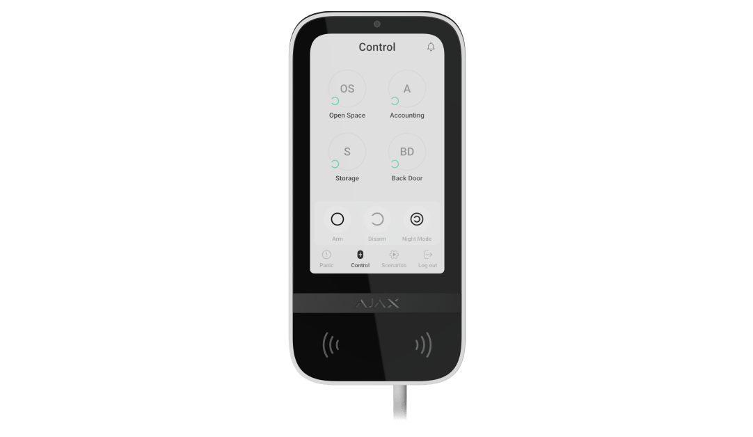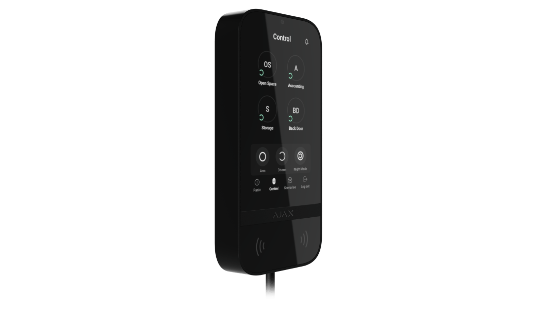 Se puede utilizar un smartphone con la app Ajax instalada y que sea compatible con Bluetooth Low Energy (BLE) en lugar de Tag o Pass para autorizar a un usuario. BLE es un protocolo de radio energéticamente eficiente. El teclado admite los smartphones Android e iOS con la versión BLE 4.2 y posterior.