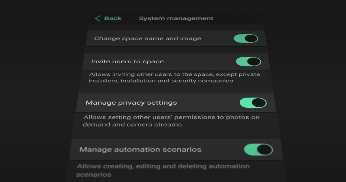Pour que ces demandes simples ne deviennent pas un fardeau, Ajax Systems permet désormais aux utilisateurs standard et aux installateurs PRO de gérer plus facilement le système. Les administrateurs système peuvent décider quels utilisateurs peuvent avoir des permissions étendues et définir quelles actions de gestion sont autorisées. Parallèlement, les paramètres système principaux et les réglages critiques des dispositifs demeurent exclusivement accessibles aux administrateurs.
