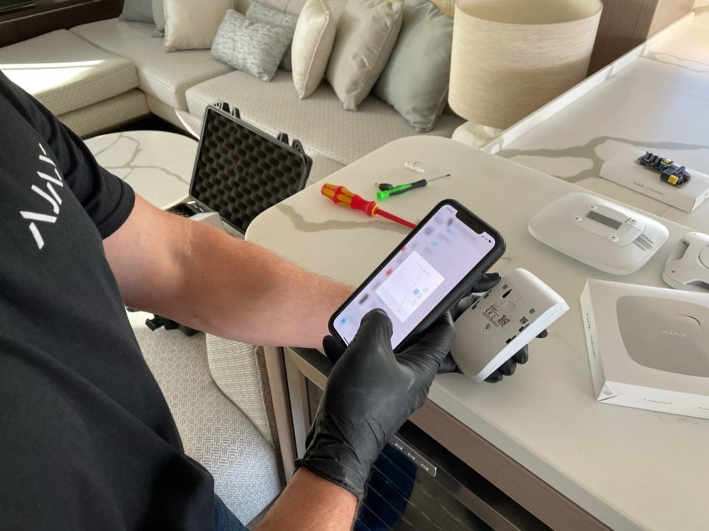 Système de sécurité Ajax, intégré via une API propriétaire avec des détecteurs sans fil qui conviennent à la fois aux intérieurs de yachts de luxe et aux budgets serrés