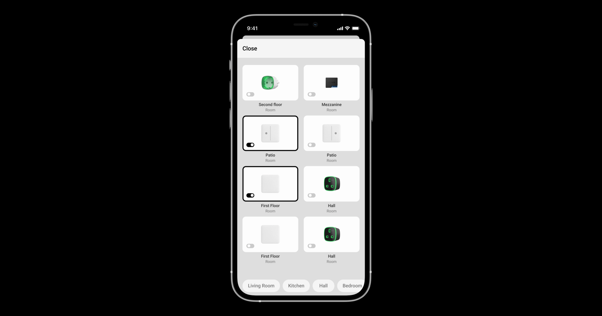 Con tutto quanto elencato sopra, uno smartphone con un’applicazione Ajax diventa il telecomando per l’illuminazione. Gli utenti possono spegnere le luci mentre lasciano l’ufficio o accendere le luci di qualsiasi stanza della casa rimanendo sul divano.