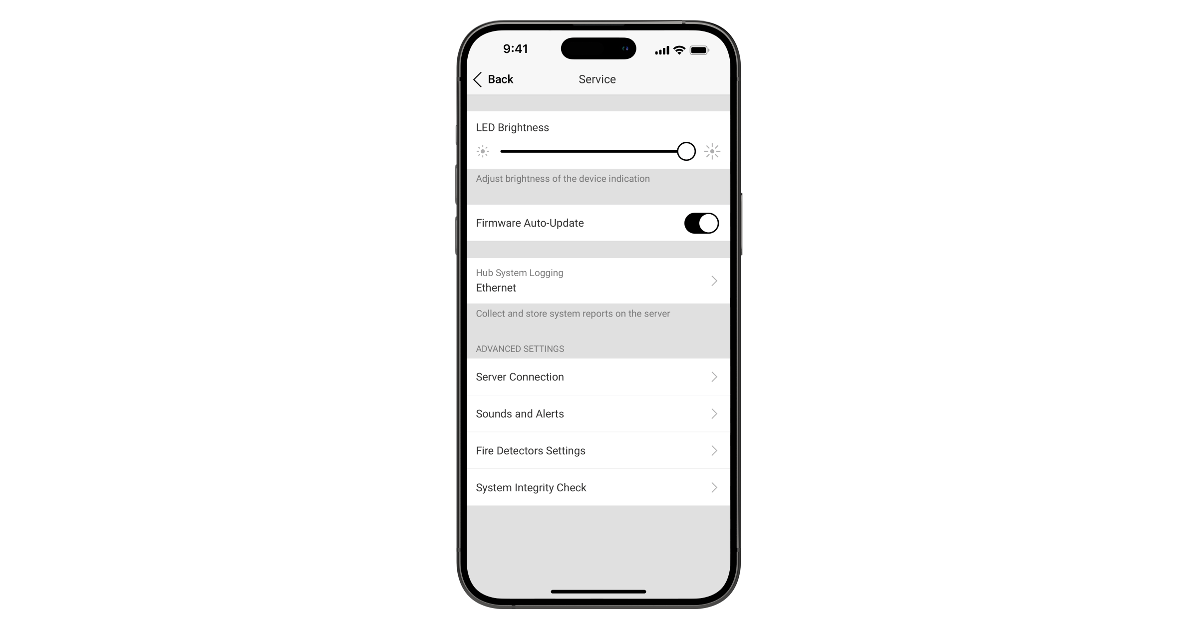 De hub controleert elke 5 minuten of er updates zijn voor het besturingssysteem. Als de optie voor automatisch bijwerken is ingeschakeld in de instellingen van de hub, dan start de update wanneer het systeem wordt uitgeschakeld en aangesloten is op een externe voedingsbron. Als deze optie is uitgeschakeld, kan de mobiele app de update installeren. Als het beveiligingssysteem is ingeschakeld wanneer de hub nieuwe firmware detecteert, wordt de update op de achtergrond geladen en pas geïnstalleerd nadat het systeem is uitgeschakeld. Dit heeft geen enkele invloed op de werking van het systeem.