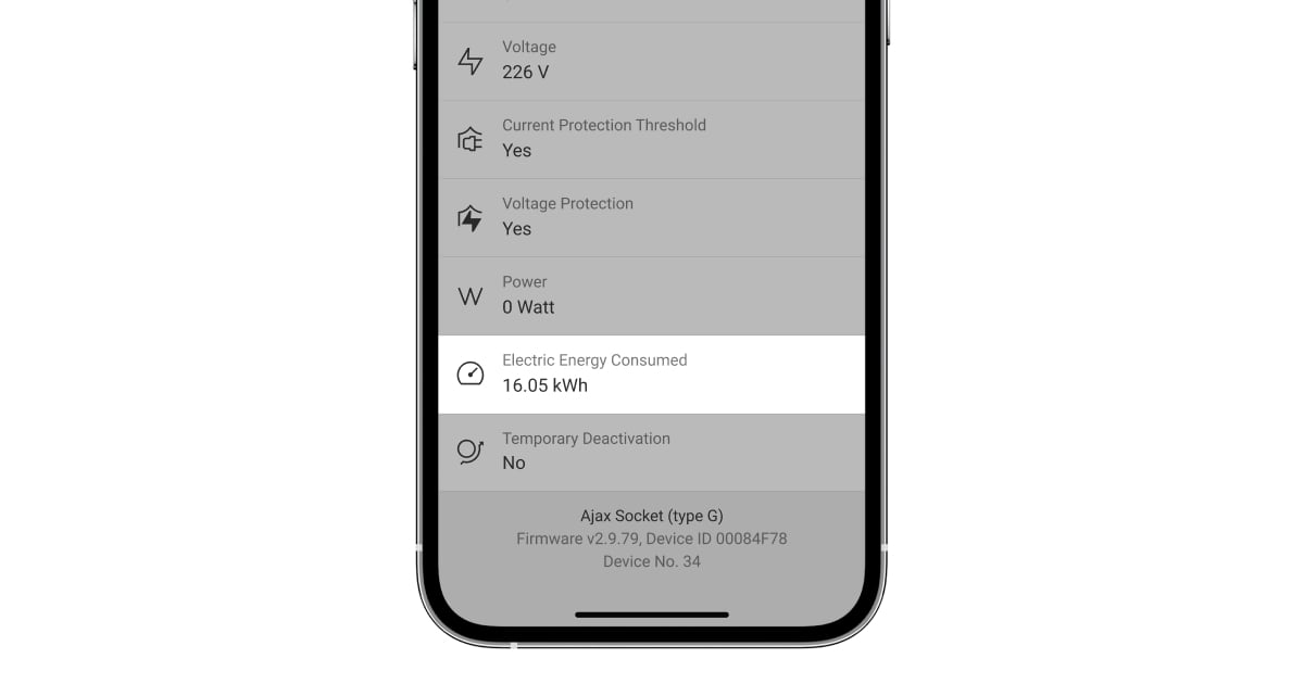 Monitoruj w aplikacji Ajax dokładne zużycie energii przez podłączone urządzenie.