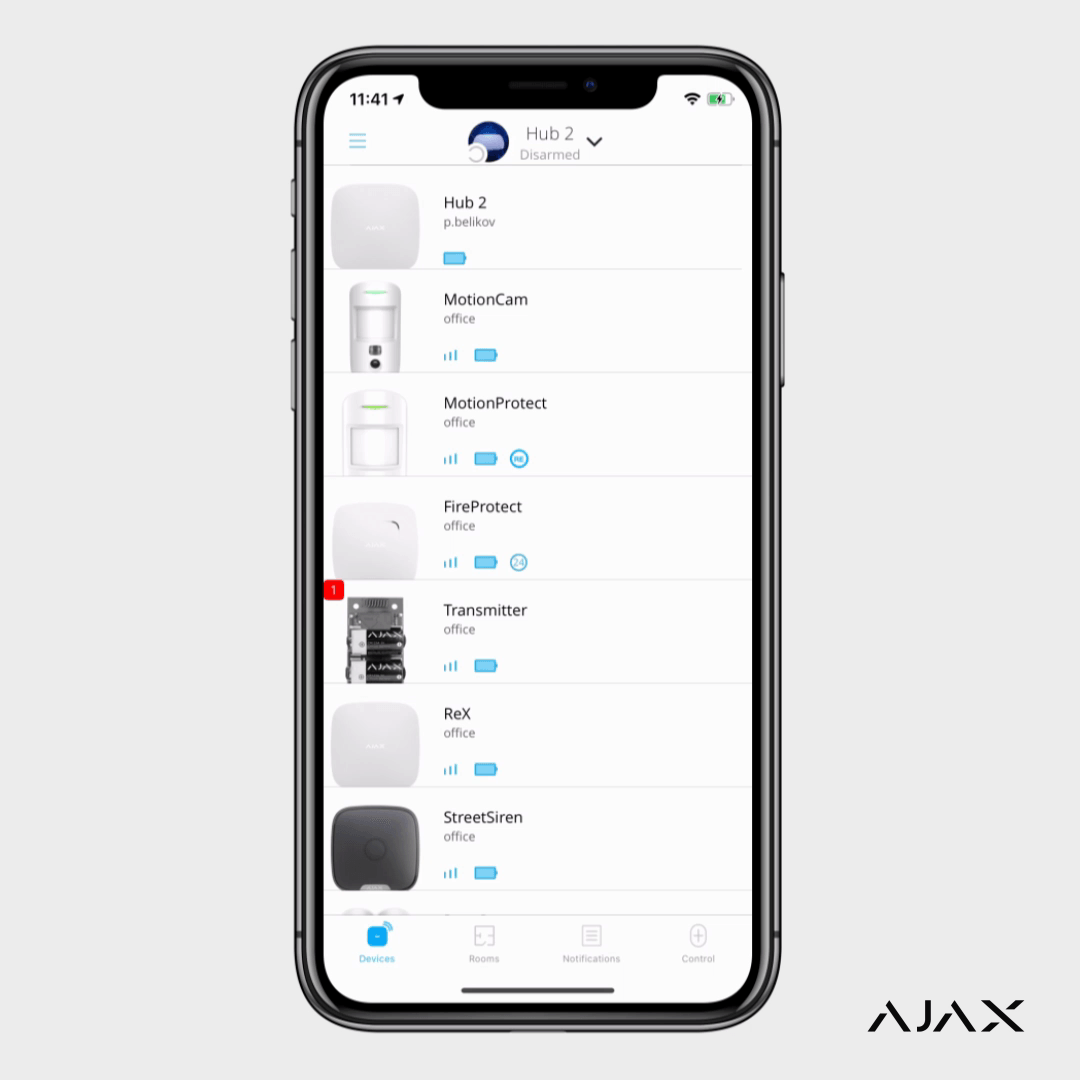 Mesmo que os intrusos consigam os seus dados de login e palavra-passe Ajax, não conseguirão entrar despercebidos. A app enviar-lhe-á de imediato uma notificação sobre o início de uma nova sessão. Basta um toque para expulsar os atacantes e impedir que estes controlem o seu sistema de segurança.
