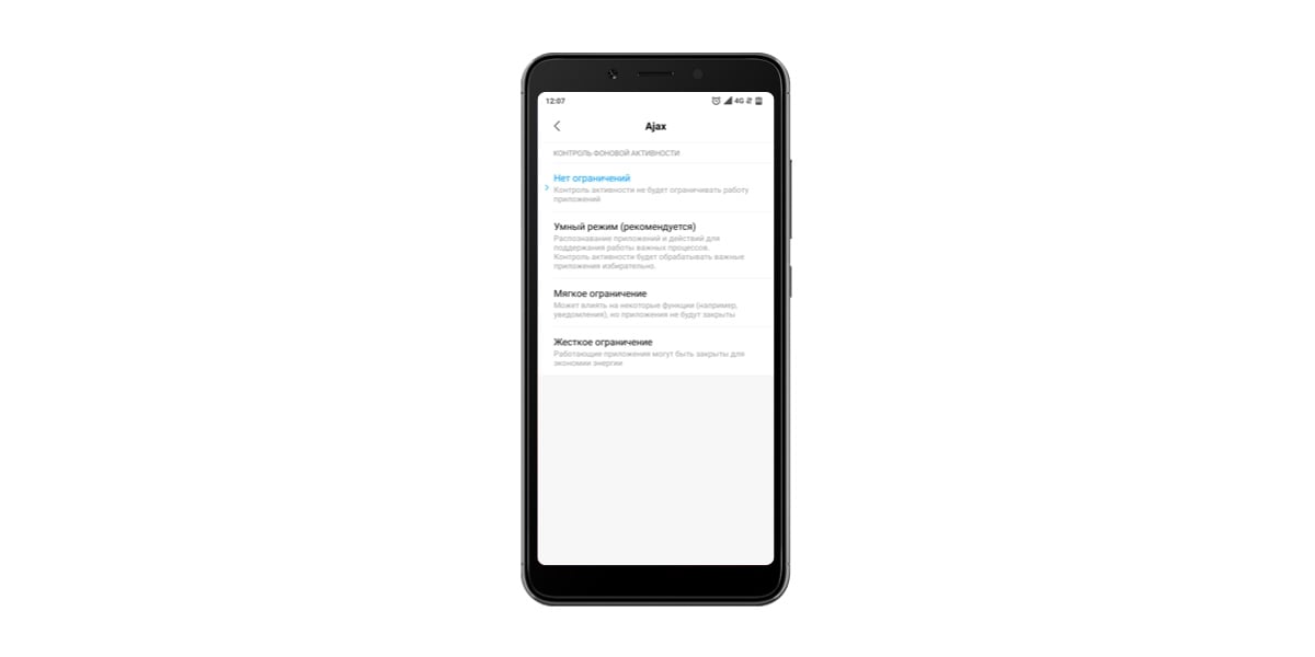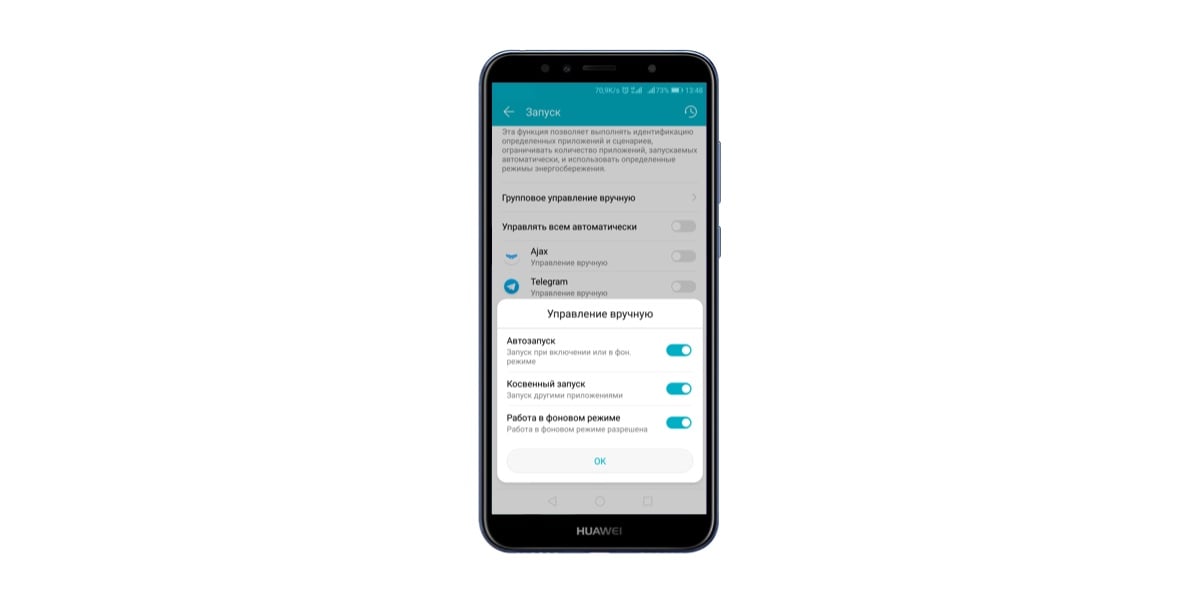 1. Перейдите в меню: Настройки смартфона → Батарея → Запуск → приложение Ajax.