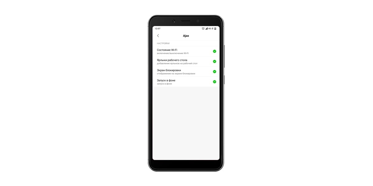 2. Нажмите Другие разрешения и разрешите: Состояние Wi-Fi, Ярлыки рабочего стола, Экран блокировки, Запуск в фоне. Вернитесь в меню настроек.