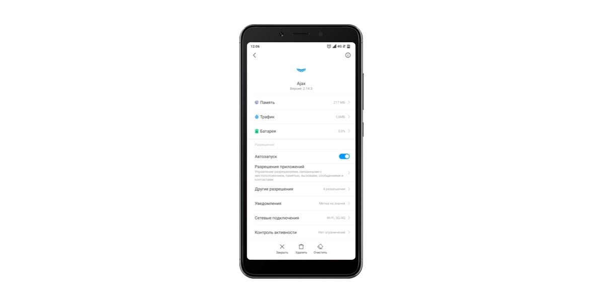 - Перейдите в меню: Настройки смартфона → Все приложения → приложение Ajax.