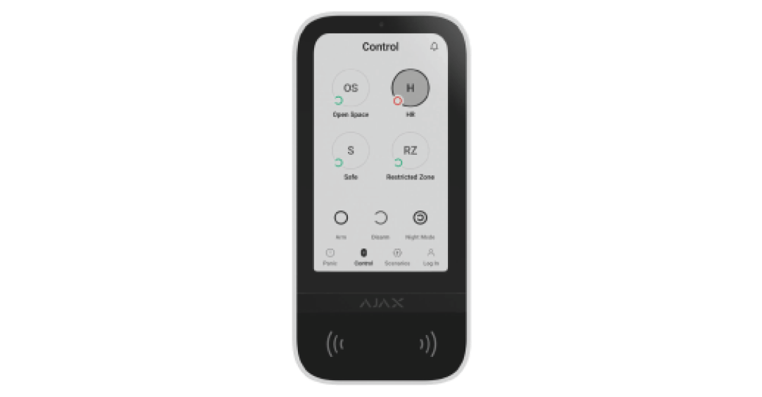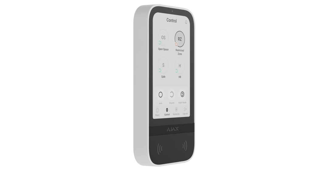 Tag veya Pass yerine Ajax uygulaması yüklü ve Bluetooth Low Energy (BLE) desteği olan bir akıllı telefon kullanıcı yetkilendirmesi için kullanılabilir. BLE, düşük güç tüketimi bulunan bir telsiz protokolüdür. Tuş takımı, BLE 4.2 ve üzeri bulunan Android ve iOS akıllı telefonları destekler.